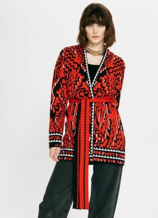 COTTON JACQUARD CARDIGAN RED