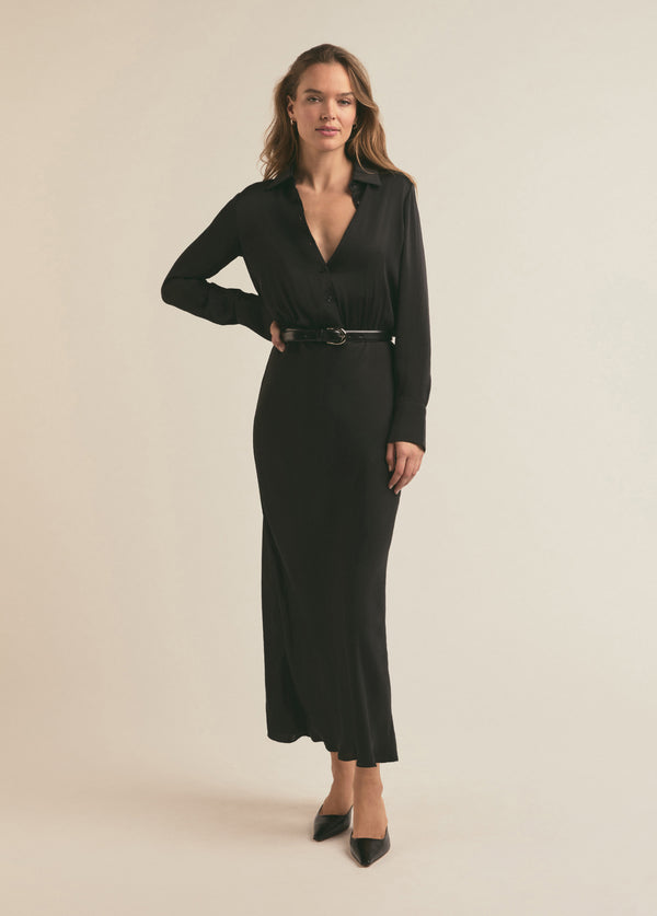 SILK MAXI SHIRT DRESS BLACK