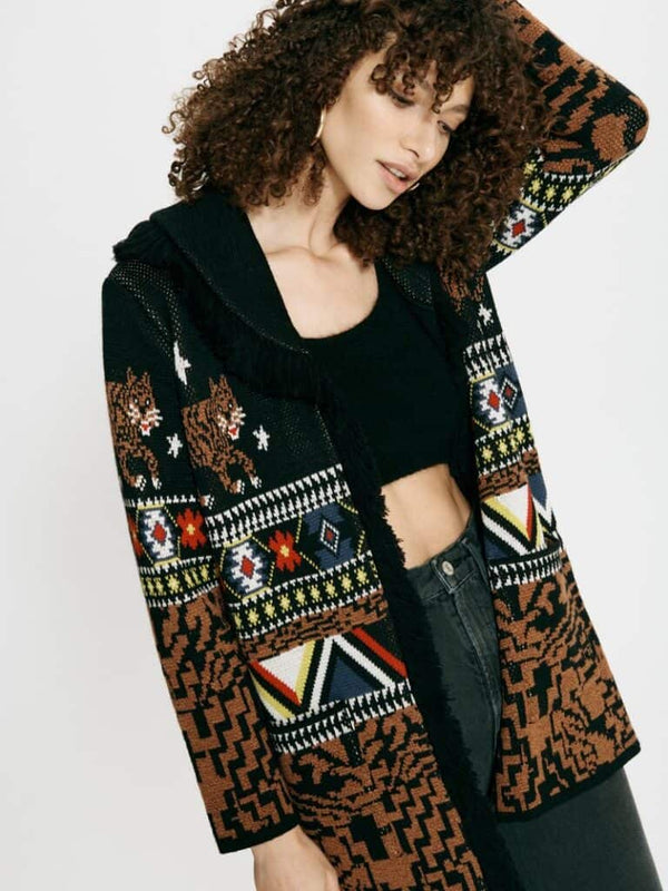 MERINO JACQUARD CARDIGAN BLACK